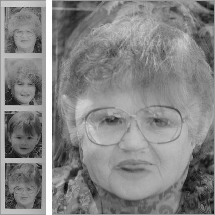 Molly to Molly consists of a suite of four lenticular photographs documenting four generations of women from the artist’s family. The top three photographs each contain a pair of images of a mother and her daughter: Molly & Sharon; Sharon & Lainie; Lainie & Molly. The bottom photograph pairs an image of the youngest member of the family with the great grandmother for whom she is named. Toronto based artist, Michael Klein has been exhibiting video and photo-based work for more than 25 years. His interests include personal history and identity, relationships and interaction, structure and presentation. Recent exhibitions include Citizen Dandy at the Art Gallery of Windsor and i and i at the Confederation Centre for the Arts Gallery in Charlottetown. Citizen Dandy was also included in the exhibition, Here Now or Nowhere in Grand Prairie, Alberta in 2009. Video Pool in Winnipeg will be exhibiting i and i in 2010. Michael Klein is also the director of MKG127 (www.mkg127.com). |