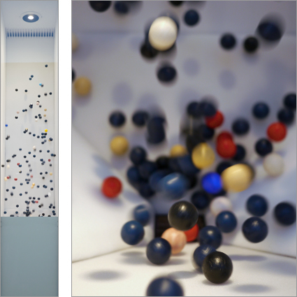 For Queen Street Particulate (Blonde Cop), Ryan Park has turned *QueenSpecific into an air-powered ball mixer reminiscent of lottery draw machines. The colour palette of the balls has been selected from the colours found on the uniforms of the Toronto Police, as well as an imagined fair-haired officer. Website design by Stareatjello Design. |