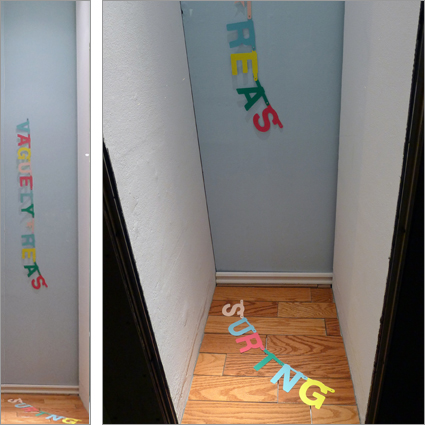 Using poetic gestures and humour to explore feelings of isolation and loneliness, Vaguely Reassuring exists as part of a larger series that mimics the trite qualities of celebratory banners. A play on the types of sentiments normally expressed by these banners, the words “vaguely reassuring” are meant to simultaneously describe and offer a half-hearted attempt at positive reinforcement.